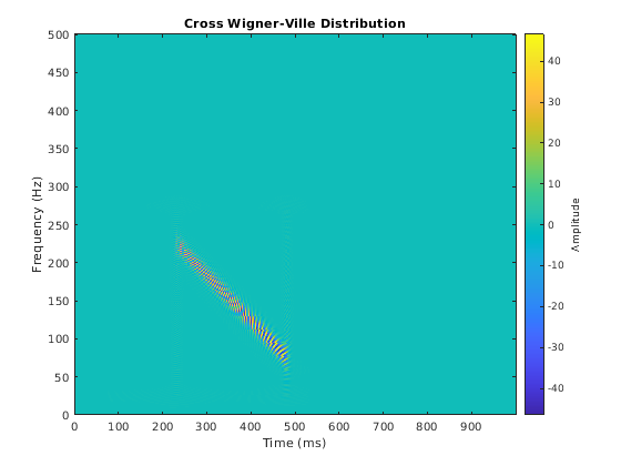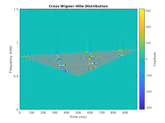 Вычислите и постройте кросс-распределение Wigner-Ville сигналов. Перекрестное распределение соответствует перекрестным условиям распределения Wigner-Ville.