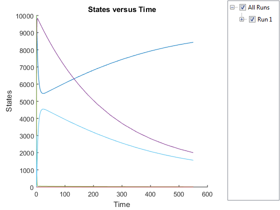 ynew — Результаты симуляцииSimData объектыРезультаты симуляции, возвращенные как вектор SimData объекты. О состояниях сообщают в ynew состояния, которые были включены в responseMap входной параметр sbiofit а также любые другие состояния перечислены в StatesToLog свойство опций во время выполнения (RuntimeOptions) из модели SimBiology.