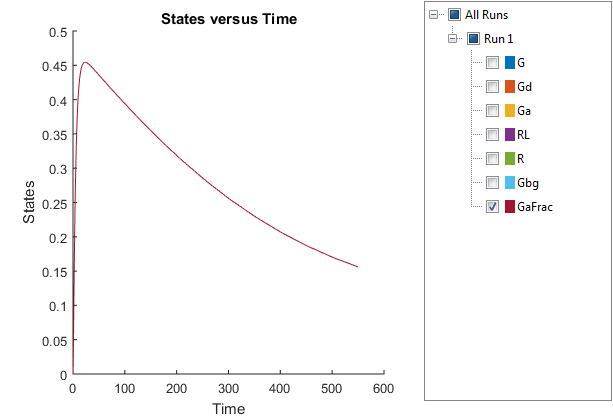 sbioloadproject gproteinВведите экспериментальные данные, содержащие курс времени для части активного белка G, как сообщается в ссылочной газете [1].