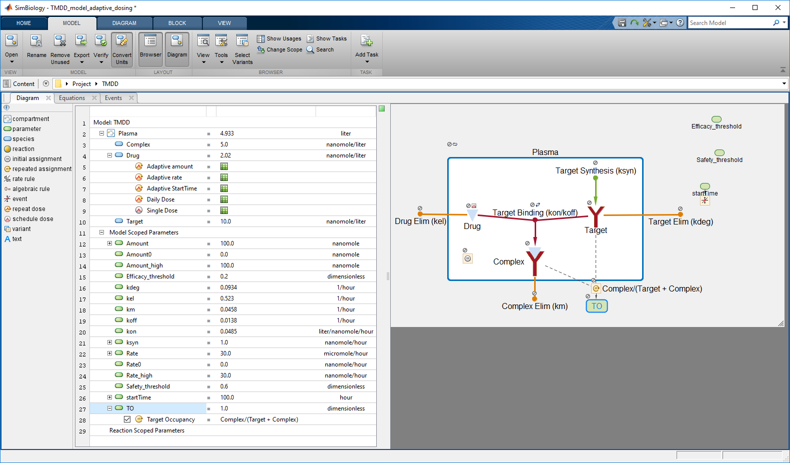 Приложение SimBiology позволяет вам создать модели динамических систем, такие как количественная системная фармакология (QSP), фармакокинетическая/фармакодинамическая (PK/PD) и модели системной биологии в интерактивном режиме. Это предоставляет редактор блок-схемы, чтобы создать реакцию модели, схематичную при помощи встроенных блоков.