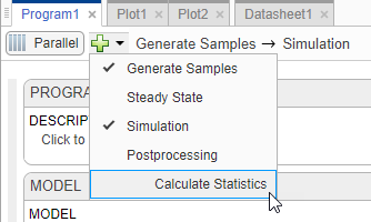 Вернитесь к программе путем нажатия на вкладку Program1. Кликните (+) значок около верхней части программы и выберите Calculate Statistics под Postprocessing.