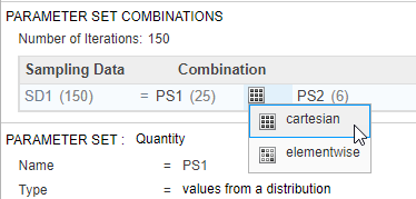 Около верхней части шага Generate Samples, под Parameter Set Combinations, гарантируют, что тип Combination установлен в cartesian объединить PS1 и PS2.