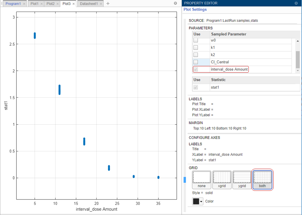 Покажите только подграфик суммы дозы. В Plot Settings снимите все флажки в таблице Parameters, кроме interval_dose Amount.