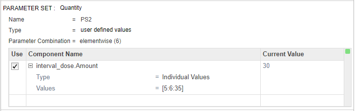 Дважды кликните пустую ячейку в столбце Component Name и введите interval. Список выбора появляется. Выберите interval_dose.Amount.