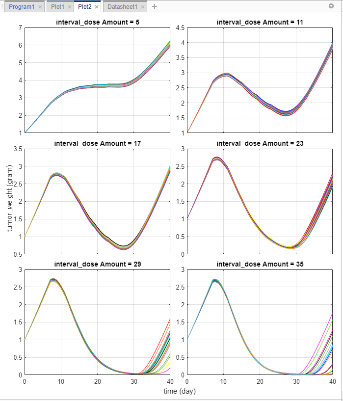 Если у вас есть готовые выборки, можно симулировать модель, чтобы исследовать рост опухоли виртуальных пациентов, получающих различные суммы дозы.