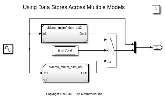 Большая модель может потребовать отдельных сигналов направить со многими отдельными блоками в других местах в схеме. Можно сконфигурировать хранилище данных, чтобы предоставить доступ к данным сигнала отовсюду в модели, похожей на глобальную переменную в компьютерной программе. Однако как с глобальными переменными, хранилища данных могут уменьшать прозрачность модели и сделать верификацию модели более трудной. Чтобы решить, использовать ли хранилище данных, смотрите Основы Хранилища данных.