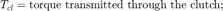 Решая уравнение 1 и уравнение 4, крутящий момент, переданный муфтой, в то время как заблокировано: