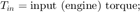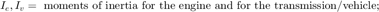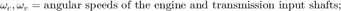 Когда муфта заблокирована, скорости вращения механизма и входных валов передачи являются тем же самым и системными действиями крутящего момента на объединенной инерции как единый блок. Так, мы комбинируем дифференциальные уравнения (уравнение 1) в одно уравнение для заблокированного состояния.