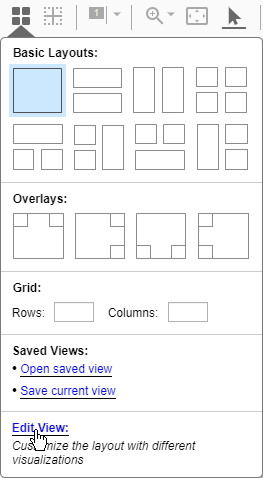 Чтобы добавить визуализацию XY в ваше размещение, откройте галерею Visualization путем выбора Edit View из меню Layouts.