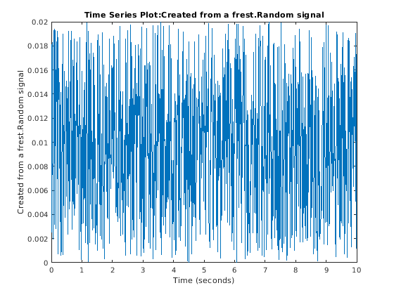 Используйте frest.Random объект представлять случайный входной сигнал для оценки частотной характеристики. Случайный сигнал содержит равномерно распределенные случайные числа в интервале [0 Amplitude] или [Amplitude 0] для положительных и отрицательных амплитуд, соответственно.
