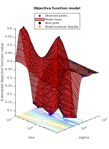 results = bayesopt(minfn,[sigma,box],'IsObjectiveDeterministic',true,... 'AcquisitionFunctionName','expected-improvement-plus')