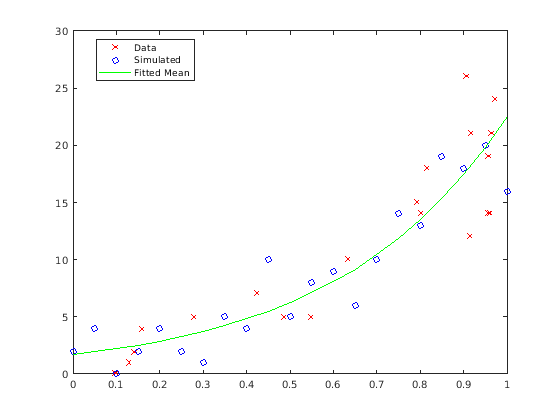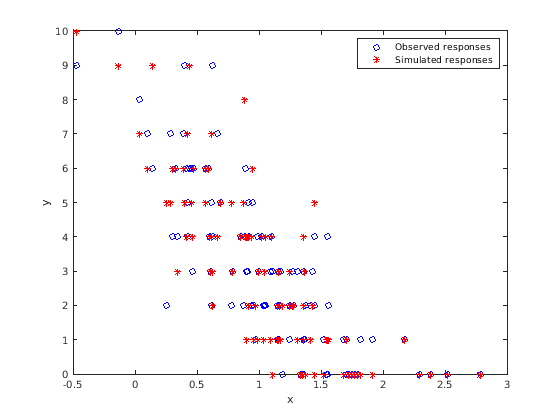 симулирует ответы от ysim = random(mdl,Xnew)mdl обобщенная линейная модель к данным в Xnew.