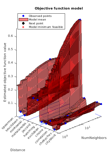 rng(1) Mdl = fitcknn(X,Y,'OptimizeHyperparameters','auto',... 'HyperparameterOptimizationOptions',... struct('AcquisitionFunctionName','expected-improvement-plus'))