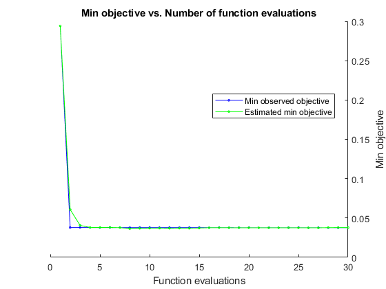 ShowPlots | Логическое значение, указывающее, показать ли графики. Если true, это поле строит лучшее значение целевой функции против номера итерации. Если существуют один или два параметра оптимизации, и если Optimizer 'bayesopt', затем ShowPlots также строит модель целевой функции против параметров. | true |