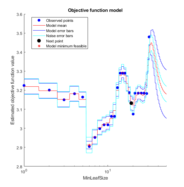 X = [Weight,Horsepower]; Y = MPG; rng default Mdl = fitrtree(X,Y,'OptimizeHyperparameters','auto',... 'HyperparameterOptimizationOptions',struct('AcquisitionFunctionName',... 'expected-improvement-plus'))