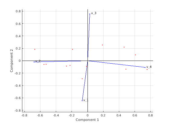 В этом случае, pca вычисляет (i, j) элемент ковариационной матрицы с помощью строк без NaN значения в столбцах i или j X. Обратите внимание на то, что получившаяся ковариационная матрица не может быть положительна определенный. Эта опция применяется когда алгоритм pca использование является разложением собственного значения. Когда вы не задаете алгоритм, как в этом примере, pca наборы это к 'eig'. Если вы требуете 'svd' как алгоритм, с 'pairwise' опция, затем pca возвращает предупреждающее сообщение, устанавливает алгоритм на 'eig' и продолжается.