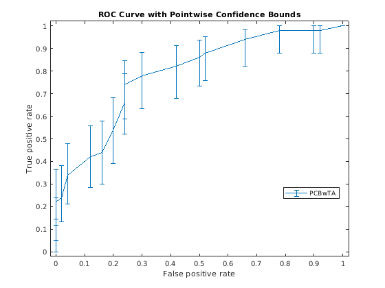 Если perfcurve не вычисляет pointwise доверительные границы, AUC скалярное значение.