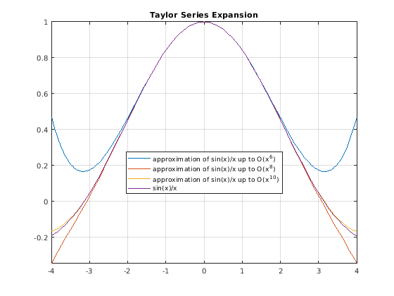 аппроксимирует T = taylor(f,var)f с расширением Ряда Тейлора f до пятого порядка в точке var = 0. Если вы не задаете var, затем taylor использует переменную по умолчанию, определенную symvar(f,1).