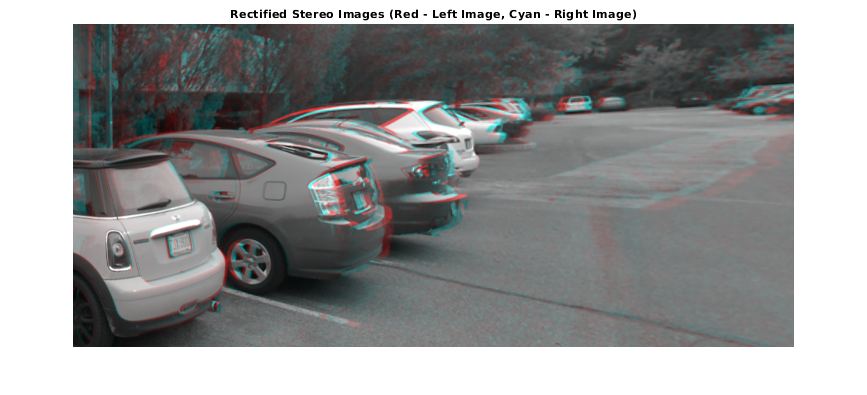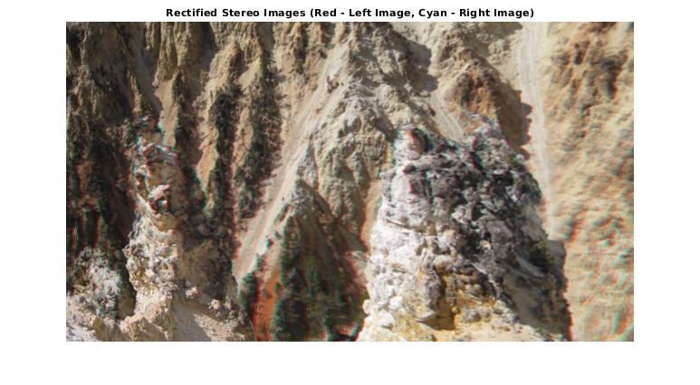 title('Rectified Stereo Images (Red - Left Image, Cyan - Right Image)');