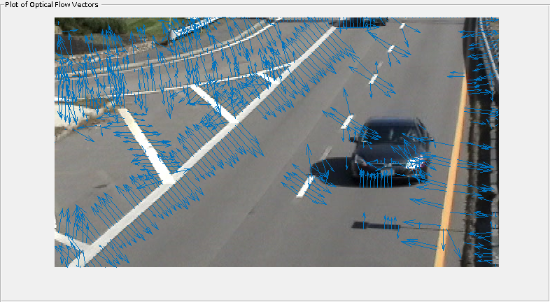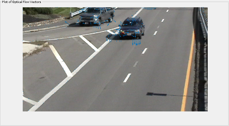 возвращается оптический поток возражают, что можно использовать, чтобы оценить направление и скорость движущихся объектов в видео. Оптический поток оценивается с помощью метода Лукаса-Кэнэйда.opticFlow = opticalFlowLK