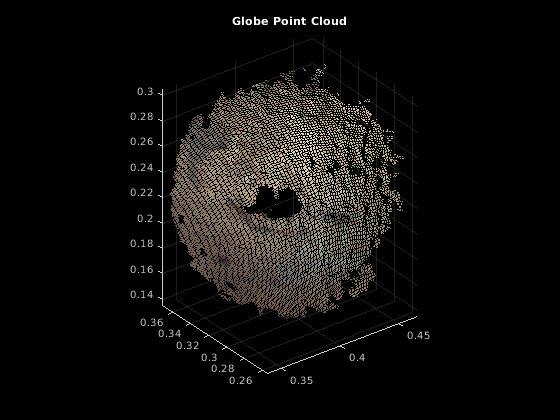 соответствует сфере к облаку точек, которое имеет максимальное допустимое расстояние от точки inlier до сферы. Функция возвращает геометрическую модель, которая описывает сферу.model = pcfitsphere(ptCloudIn,maxDistance)