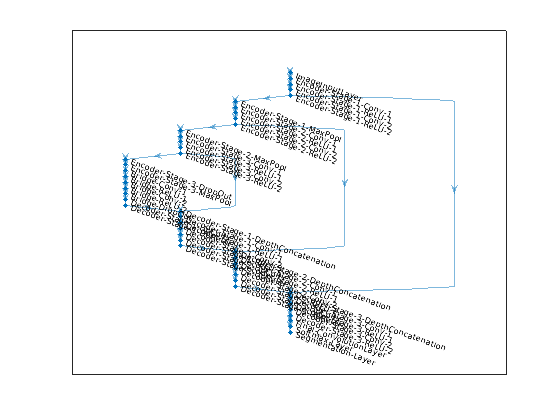 Используйте unetLayers создать архитектуру сети U-Net. Необходимо обучить сеть с помощью функции Deep Learning Toolbox™ trainNetwork.