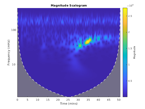 centerFrequencies | Полоса пропускания набора фильтров CWT сосредотачивает частоты |