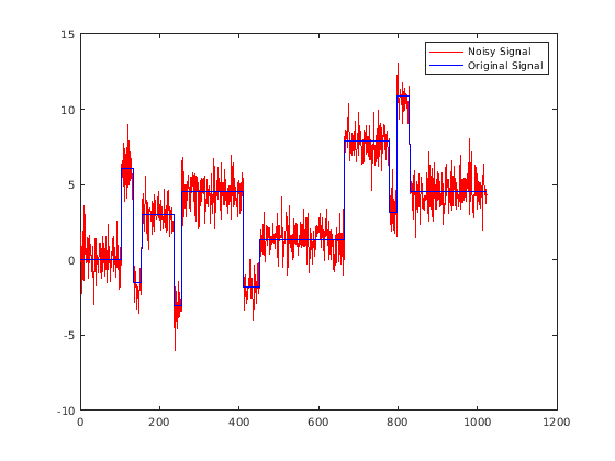 где время n равномерно распределено. В самой простой модели предположите, что e (n) является Гауссов белый шумовой N (0,1), и уровень шума σ равен 1. Цель шумоподавления состоит в том, чтобы подавить шумовую часть s сигнала и восстановить f.