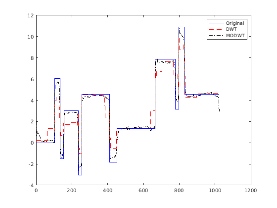В общем случае можно проигнорировать уровень шума, который должен быть оценен. Коэффициенты детали CD 1 (самая прекрасная шкала) являются чрезвычайно шумовыми коэффициентами со стандартным отклонением, равным σ. Среднее абсолютное отклонение коэффициентов является устойчивой оценкой σ. Использование устойчивой оценки крайне важно. Если коэффициенты уровня 1 содержат детали f, эти детали сконцентрированы в нескольких коэффициентах, чтобы избежать эффектов конца сигнала, которые являются чистыми артефактами из-за расчетов на ребрах.