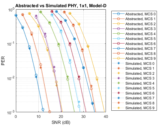 Линии связи модели симуляций уровня системы WLAN Toolbox™ с несколькими узлами. Симуляции действуют через стек протокола, который включает физический (PHY), среднее управление доступом (MAC) и прикладные уровни. Можно измерить количества, такие как пропускная способность, задержка, интерференция и пакетная потеря в узле и сетевых уровнях. Можно также исследовать сосуществование сигналов WLAN с сигналами Bluetooth® и повысить эффективность симуляции при помощи методов абстракции PHY.