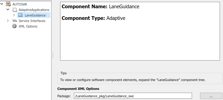 В крайней левой панели Словаря AUTOSAR расширьте AdaptiveApplications и выберите AUTOSAR адаптивный компонент.
