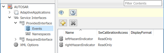 В крайней левой панели Словаря AUTOSAR расширьте выбранный интерфейс и выберите Events.