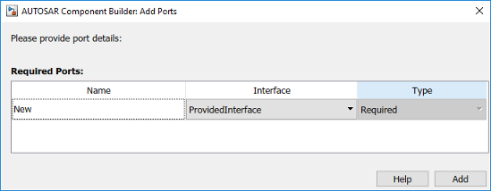 В крайней левой панели Словаря AUTOSAR расширьте имя компонента и выберите RequiredPorts.