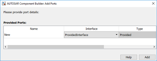 В крайней левой панели Словаря AUTOSAR выберите ProvidedPorts.