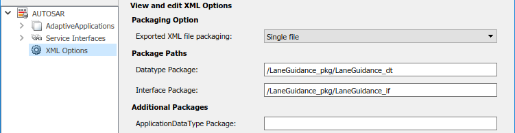 В представлении опций XML можно сконфигурировать пакеты AUTOSAR (AR-PACKAGEs), которые содержат группы элементов AUTOSAR и находятся в иерархической структуре AR-PACKAGE. (Структура AR-PACKAGE для компонента логически отлична от разделения файла ARXML, выбранного с опцией XML Exported XML file packaging или импортированный из XML-файлов AUTOSAR.) Для получения дополнительной информации о пакетах AUTOSAR, смотрите, Конфигурируют Пакеты AUTOSAR.