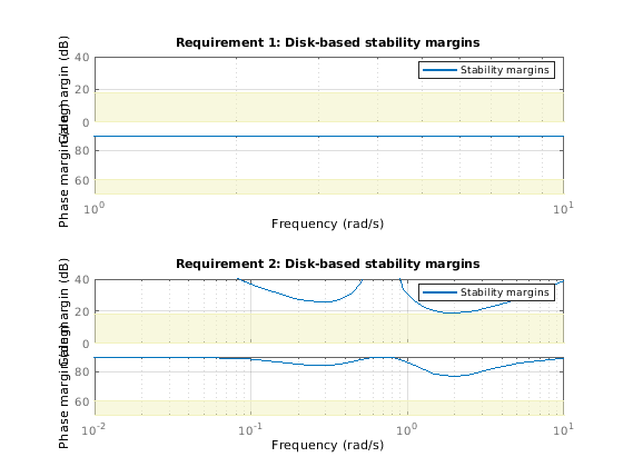 x является вектором настраиваемых параметров в системе управления, чтобы настроиться. systune преобразует каждое мягкое и трудное настраивающее требование SoftReqs(i) и HardReqs(j) в нормированные значения fi (x) и gj (x), соответственно. systune затем решает ограниченную задачу минимизации: