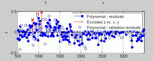 Щелкните правой кнопкой по графику остаточных значений выбрать Go to X-Z view. Представление X-Z не требуется, но представление облегчает видеть, чтобы удалить выбросы.