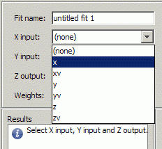 Выберите переменные валидации в выпадающих списках для X input, Y input и Z output: xvyv , и zv.