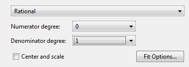 Для следующей подгонки попробуйте кубическое / кубическое уравнение. Выберите 3 и для Numerator degree и для Denominator degree.