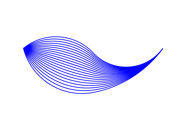 Пример 3. Следующий код генерирует Конструкцию Biarc использования в обсуждении ниже biarc конструкции, используемой здесь. Отметьте использование fntlr найти касательную к biarc вначале, в точке, где две дуги присоединяются, и в конце.