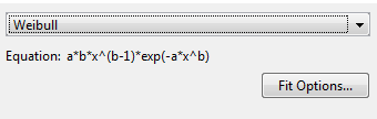 Тулбокс вычисляет случайные стартовые точки для моделей Weibull, заданных на интервале [0,1]. Можно заменить стартовые точки и задать собственные значения в Подходящем Окне параметров.
