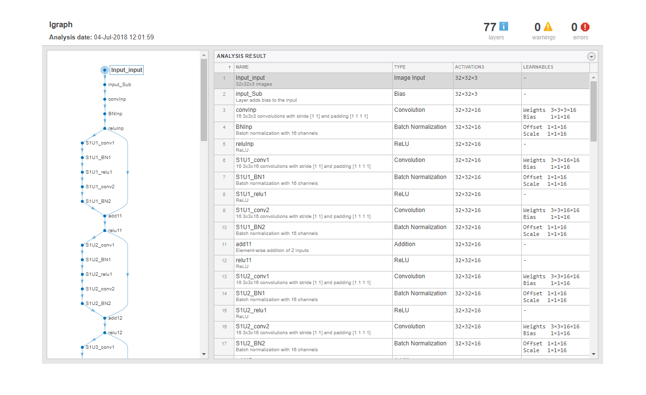 Рабочий процесс для сборки слоев, импортированных из ONNX в сеть, готовую к предсказанию, совпадает с собирающимися слоями, импортированными из Keras. Для примера этого рабочего процесса смотрите, Собирают Сеть от Предварительно обученных Слоев Keras.