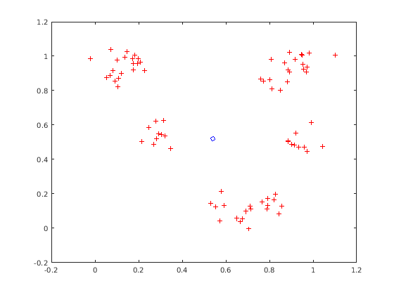 plot(x(1,:),x(2,:),'+r');