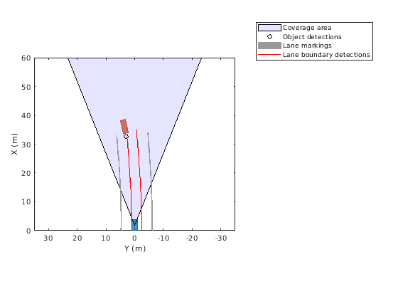 drivingScenario объект представляет 3-D арену, содержащую дороги, транспортные средства, пешеходов и другие аспекты ведущего сценария. Используйте этот объект смоделировать реалистические сценарии трафика и сгенерировать синтетические обнаружения для тестирования контроллеров или алгоритмов сплава датчика.
