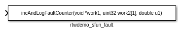 После того, как вы будете компилировать S-функцию и использовать ее в симуляции, можно вызвать функцию legacy_code () снова с первым входным набором к 'sfcn_tlc_generate', чтобы сгенерировать файл блока TLC. Файл блока задает, как сгенерированный код для модели вызывает унаследованный код. Если вы не генерируете файл блока TLC, и вы пытаетесь сгенерировать код для модели, которая включает S-функцию, сбои генерации кода. Файл блока TLC для S-функции: rtwdemo_sfun_fault.tlc.