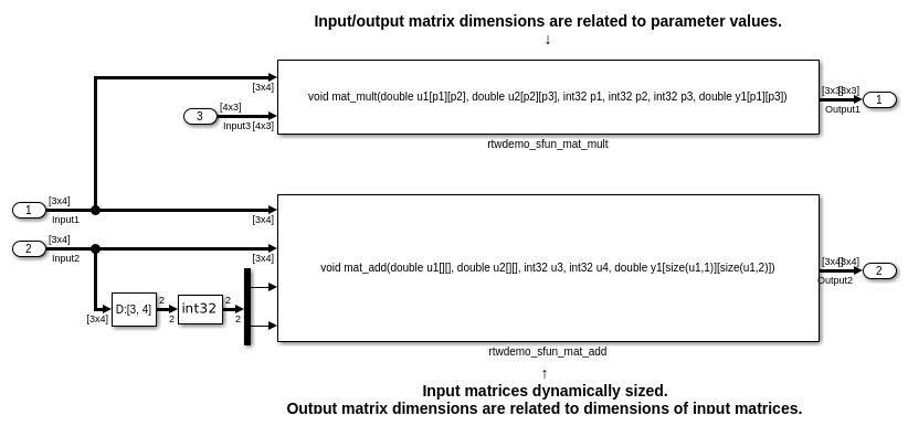Чтобы сгенерировать S-функции C-MEX согласно описанию, предоставленному входным параметром 'defs', вызовите функцию legacy_code () снова с первым входным набором к 'sfcn_cmex_generate'. S-функции вызывают устаревшие функции в процессе моделирования. Исходный код для S-функции находится в файлах rtwdemo_sfun_mat_add.c и rtwdemo_sfun_mat_mult.c.