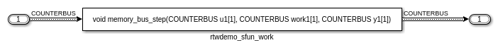 Модель rtwdemo_lct_bus показывает интегрирование модели с унаследованным кодом. Подсистема TestCounter служит обвязкой для вызова наследия C функция.