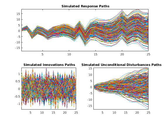 simulate(Mdl,numObs)Y) и инновации (E) из модели регрессии с ошибками временных рядов ARIMA, Mdl. Программное обеспечение симулирует numObs наблюдения и инновации на демонстрационный путь.