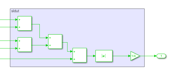 В этом примере дерево суммы обозначается sldut разделите в SLandSysGen Подсистема моделируется с блоками Simulink. Можно использовать распределенную функцию конвейеризации, чтобы заботиться об оптимизации скорости.