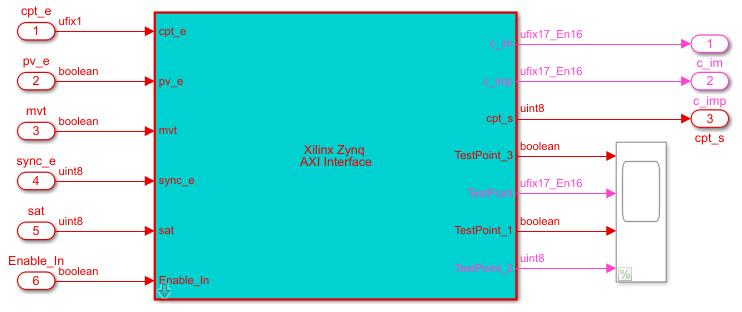 Сопоставьте порты тестовой точки с интерфейсами целевой платформы и сгенерируйте ядро IP HDL при помощи IP Core Generation или Simulink Real-Time FPGA I/O рабочие процессы то использование Xilinx Vivado или Altera Quartus II как инструменты синтеза.